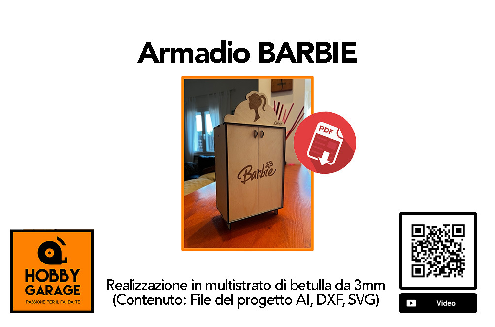 Armadio a tema 'Barbie' in multistrato di betulla da 3mm. Il contenuto digitale del progetto contiene un file PDF con le indicazioni di massima, file DXF, AI e SVG